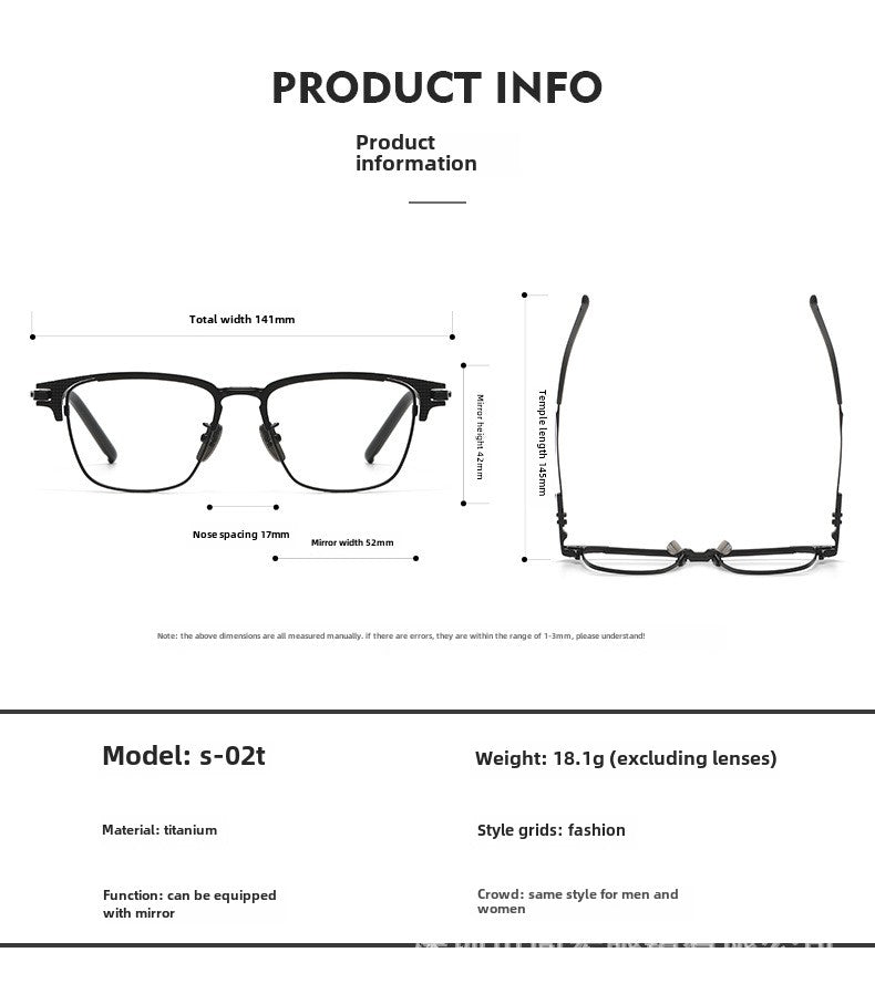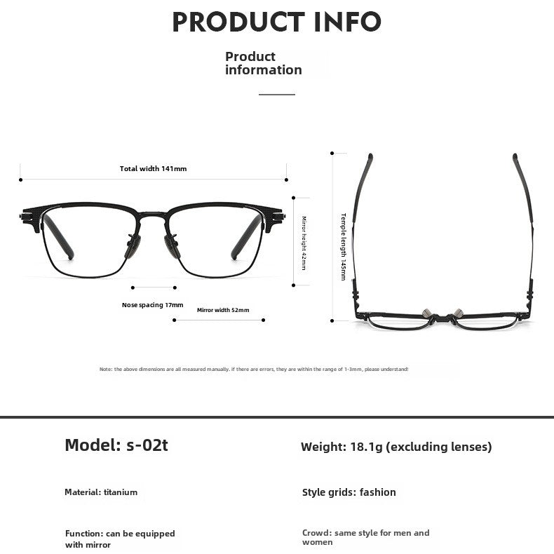 Business Full Frame Popular Pure Titanium Eyebrow Glasses Frame S-02T