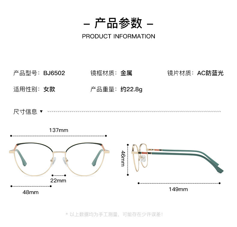 Metal Spectacle Frame Men's Myopia Women's High-Grade Glasses Frame