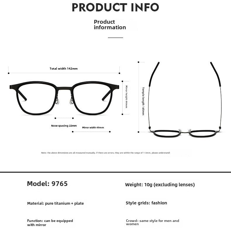 New Plate Glasses Frame Danish Designer Pure Titanium Square Myopia Glasses Frame 9765