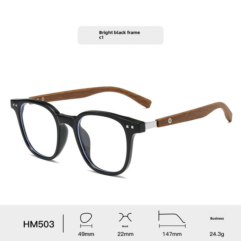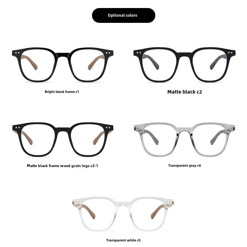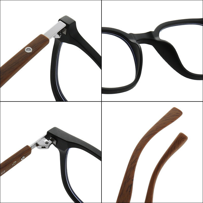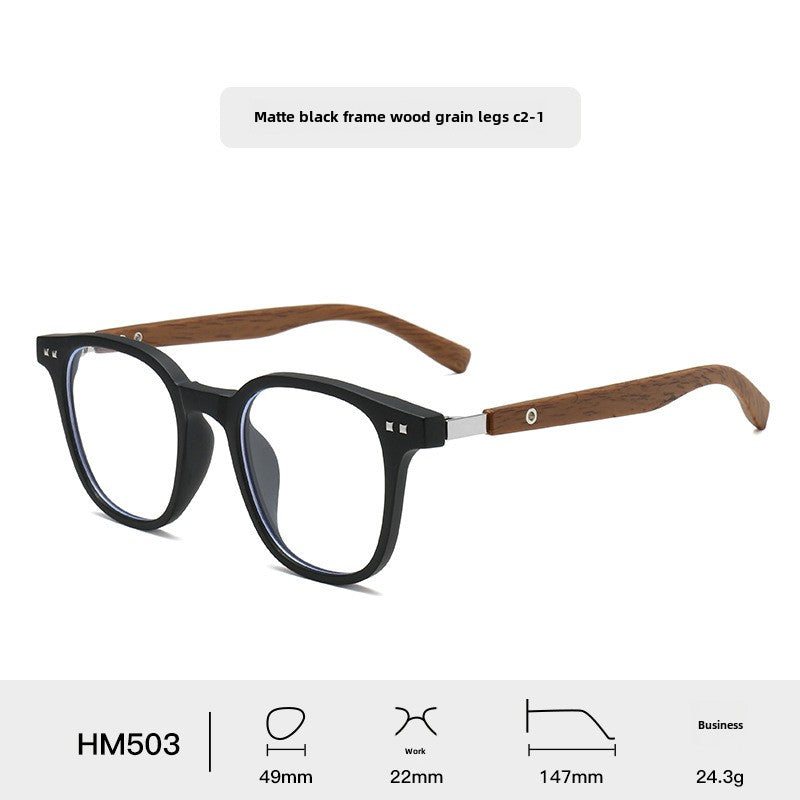 New TR90Men's and Women's Same Style Personalized Glasses Trendy High Sense HD Anti-Blue Ray Wood Grain Arms Frame