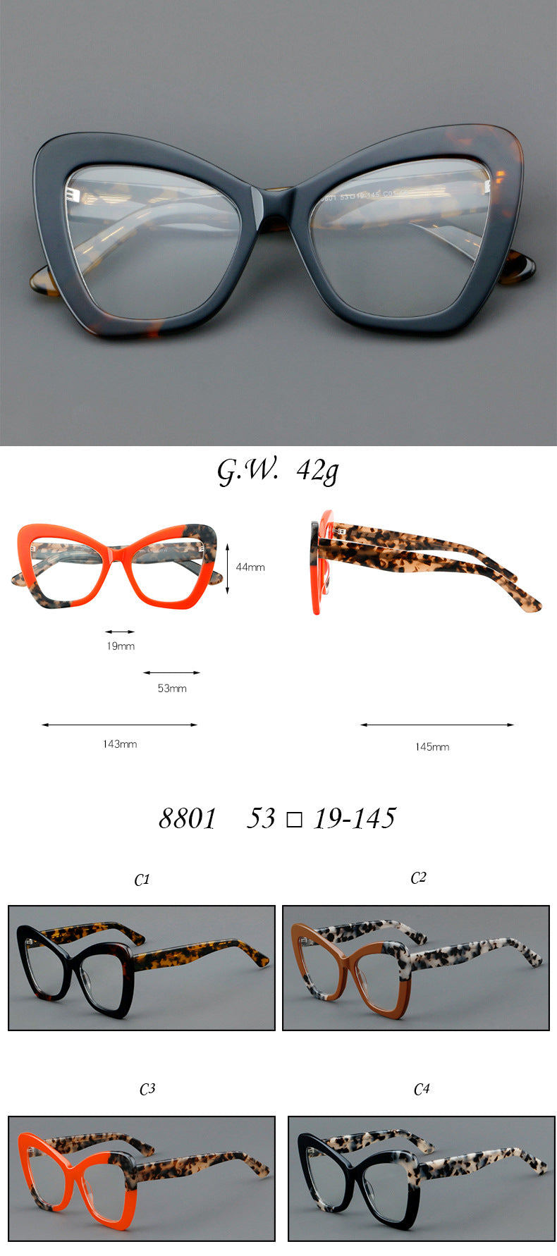 Plate Glasses Retro Frame Cat Eye Patchwork Personality Fashion Trend 8801