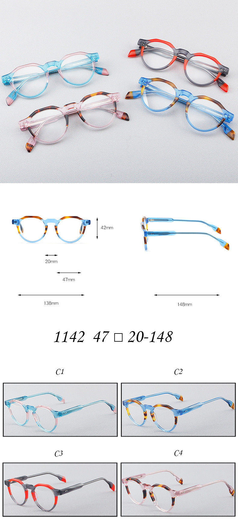 Plate Glasses Small round Rim Patchwork Retro Frame 1142