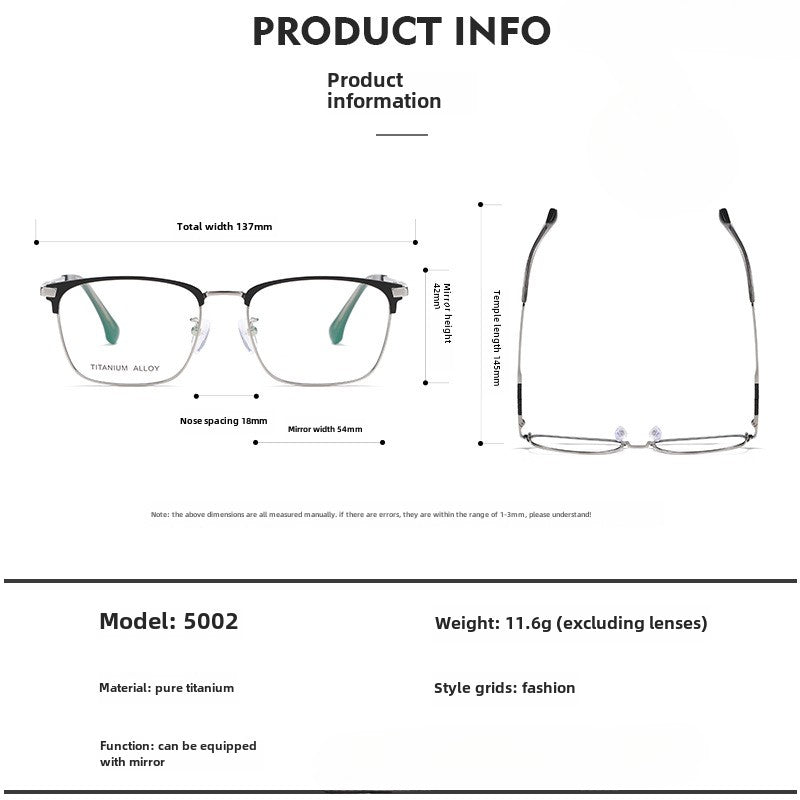 Pure Titanium Full Frame Eyebrow Line Fashion Business Xiaohongshu High Quality Anti-Blue Light Glasses 5002