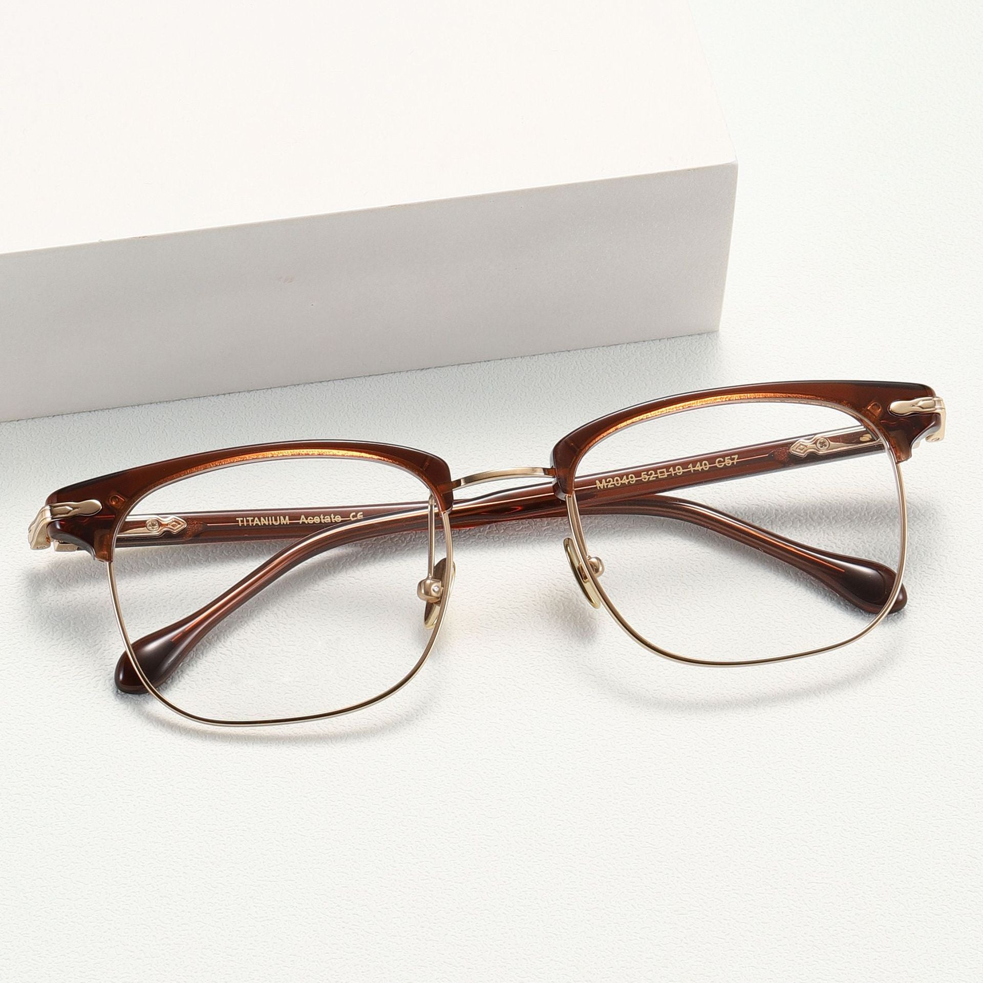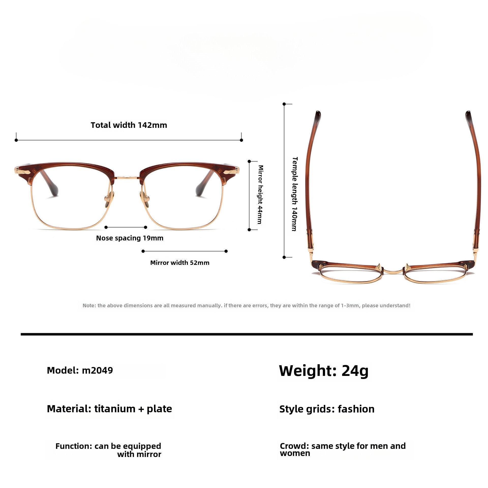 Pure Titanium Handmade Eyebrow Frame Frame Retro New Gold Capsules Sheet Metal Eyeglass Frame M2049