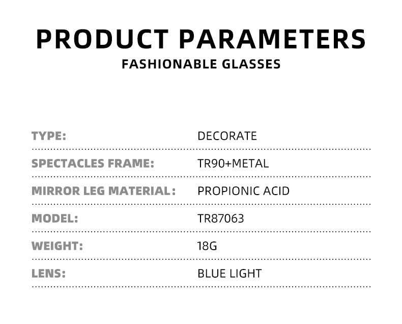 TR90+Metal Glasses Frame Cross-Border Hot Selling ins Trend Hot Selling Product Glasses Anti-Blue Light Glasses 87063