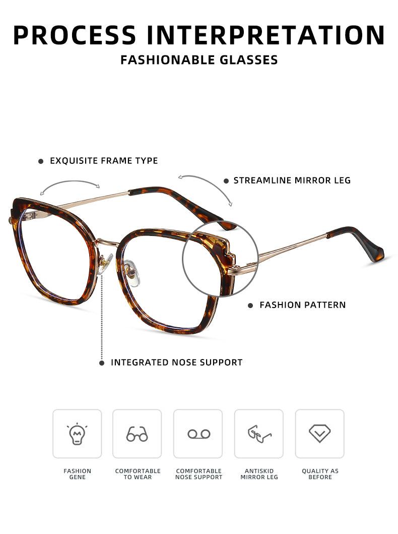 TR90+Metal Leopard Frame Glasses Frame Anti Blue-Ray Glasses Frame Radiation-Resistant Computer Optical Frame 87319
