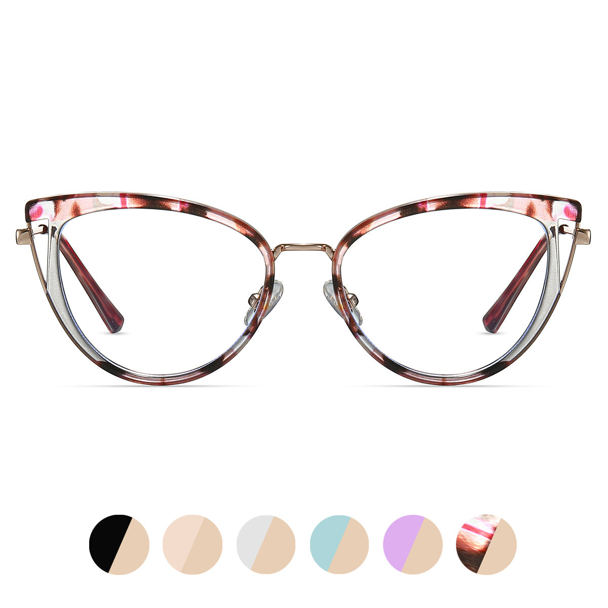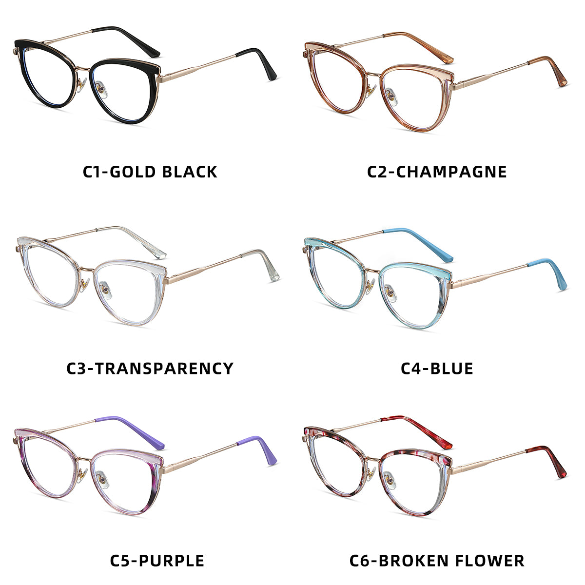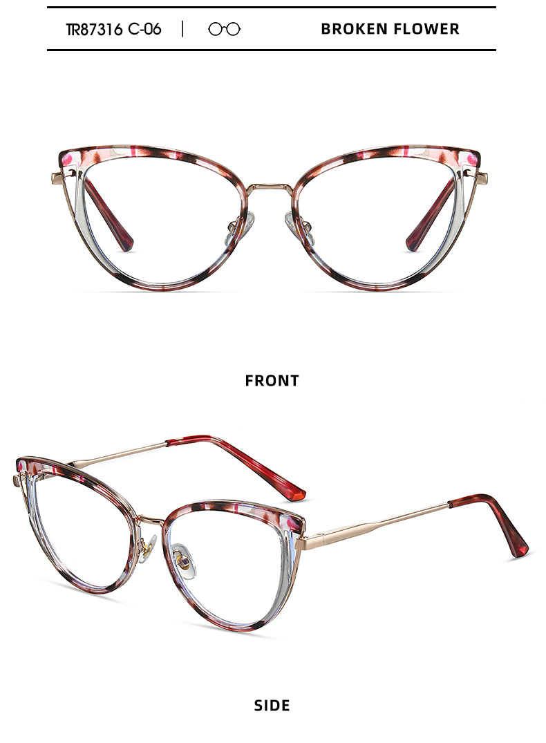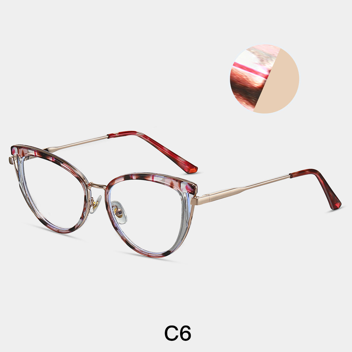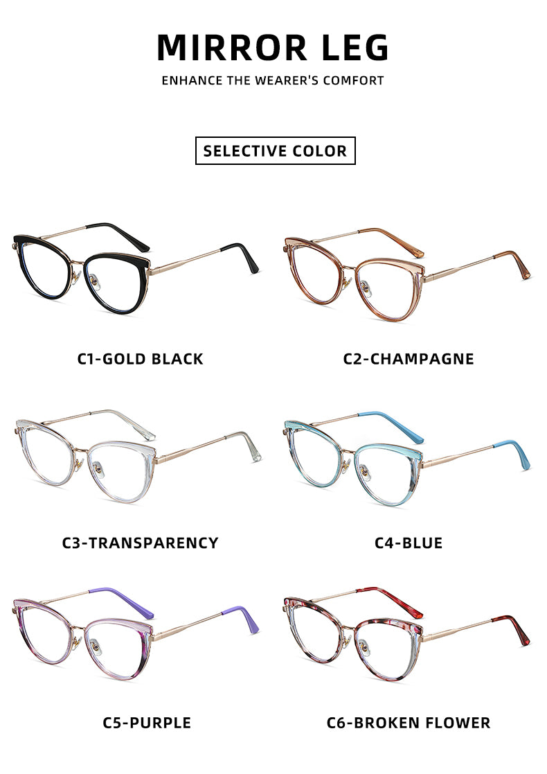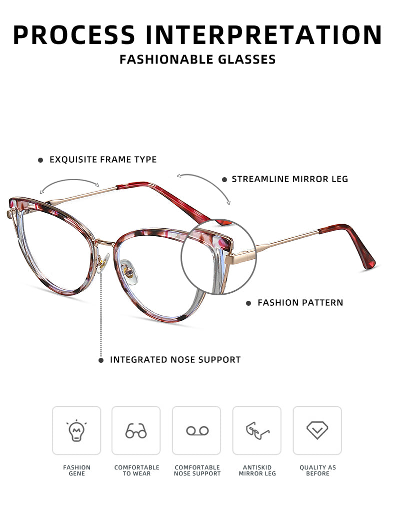 TR90+Metal Leopard-Print Glasses Frame Cat Eye Anti Blue-Ray Glasses Frame Radiation-Resistant Computer Optical Frame 87316