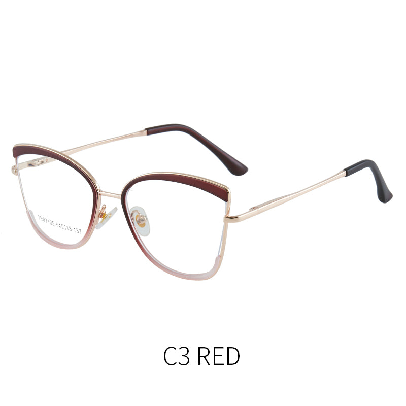 TR90Cat Eye Glasses Frame Metal Spectacle Foot Full Rim Frame Metal Optical Frame Anti-Blue Light Glasses 87105